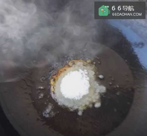 5准备好锅,在锅里面放入少量的油,把油烧热了,然后再将白砂糖放入锅里,烧起泡至白糖起色了,