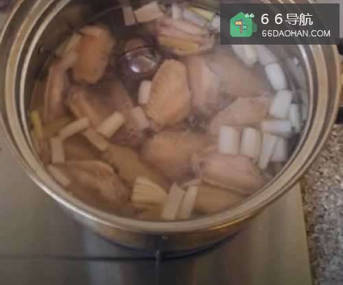 2再吧刚才洗好的鸡翅放入锅里,用大火烧开,