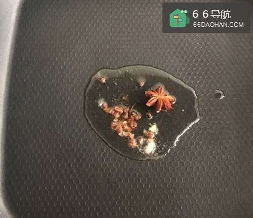 5油热后把花椒、八角放进去小火爆香即可捞出