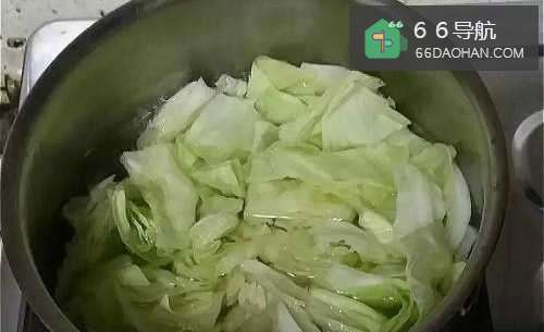 2烧开半锅水,加入一大匙油,汆烫卷心菜1分钟,捞出沥干备用。