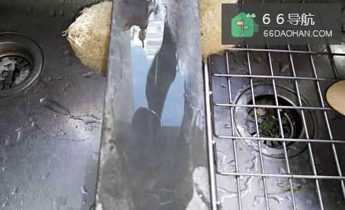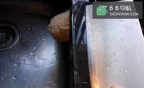 6两边全磨好啦,用水冲掉磨灰,从侧面看,刀便变得非常锋利、平整,切菜的速度便非常快了。
