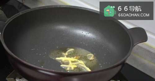 3不粘炒锅中倒入少许油,把姜丝煸炒出香味儿;