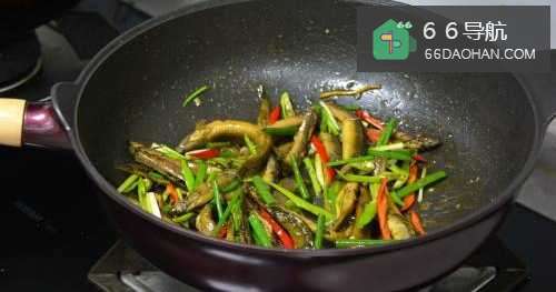 4将泥鳅倒入锅中,先不要马上翻,定一下型后端起锅晃动几下,让泥鳅布满锅底,均匀受热;