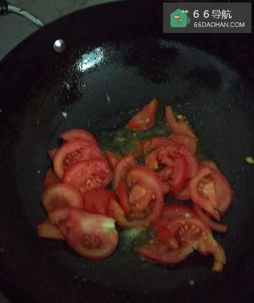 5准备好番茄,倒入姜蒜后马上倒入番茄进行翻炒,待番茄炒熟后放入少许食盐。