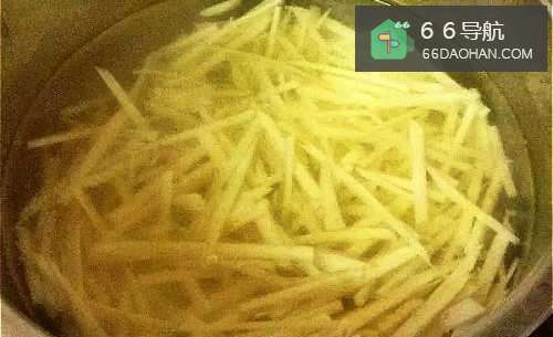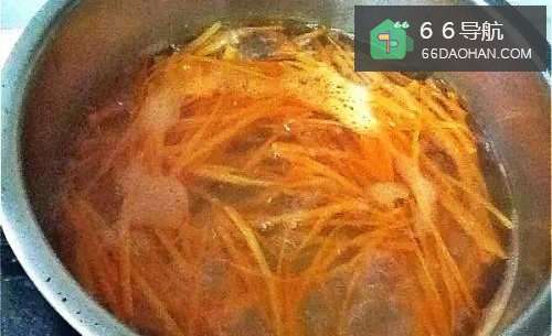 3续下红萝卜丝,氽烫约2分钟,变软即可捞起。