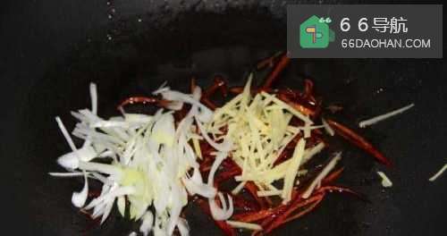 7起锅前放入剩余的10克葱丝和香菜翻炒两下