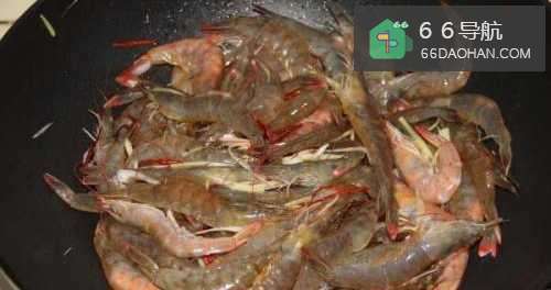 5放入姜丝、10克葱丝一并下锅炒,出香味了就倒进虾去炒