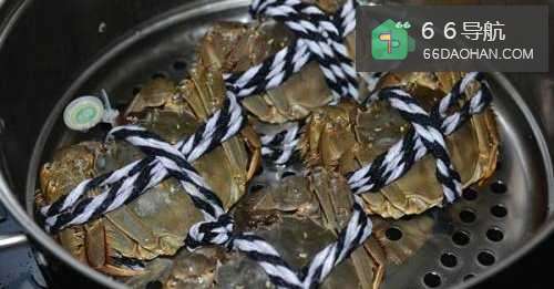 5绑好的大闸蟹,放入蒸笼盖好锅盖。