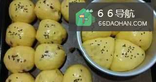 8完成二次发酵后,表面刷糖水,撒上黑芝麻。