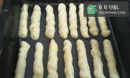 10再用裱花袋挤出手指造型,放入预热的烤箱,190摄氏度15分钟。