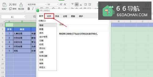 3在“单元格格式”窗口,选择【对齐】选项卡;