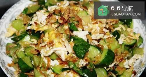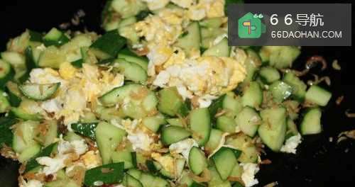 4黄瓜断生后放入鸡蛋翻炒,然后放入盐和少许酱油调味即可。