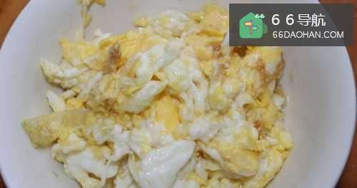 2首先把鸡蛋炒熟,然后盛入碗中。