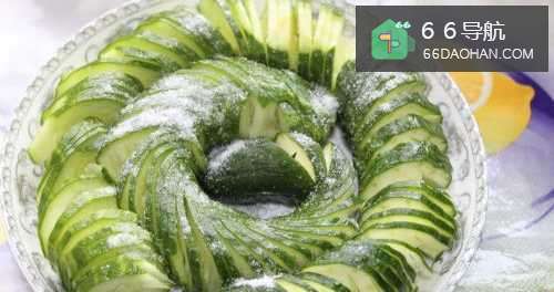 7然后把黄瓜放入盘中,撒上盐腌制两个小时(如果有时间,可以多腌制几个小时)。