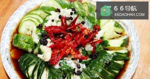 然后把辣椒摆在黄瓜上,锅中放油,油热后放入花椒炸香,然后把油和花椒一起倒入盘中(要把油浇到辣椒上,我用的是秦椒所以是浇油,因为这种辣椒容易糊,如果大家用小米椒,可以放到锅中和花椒一起炸)。