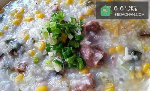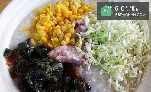 4打开锅盖,加入切粒皮蛋、玉米粒,和切丝的包心菜。
