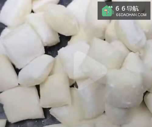 5然后切成长条,再切成小丁,再饧发10分钟。