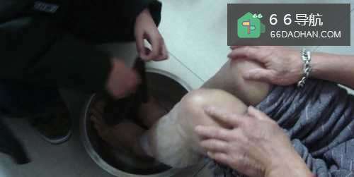 5 然后,用手帮助老人洗脚,并用毛巾抹,如下图所示。