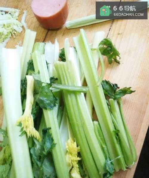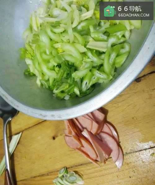 2将芹菜切成薄片,葱切成丝,火腿切成小片。
