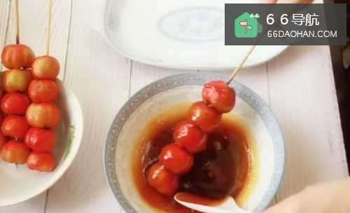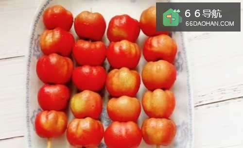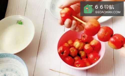 2用竹签把山楂串起来,也可以去掉山楂胡。