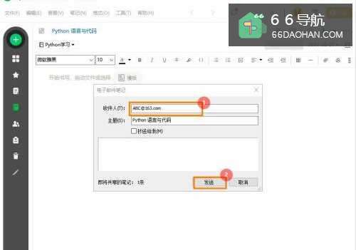 4在电子邮件笔记页面,输入【收件人】邮箱地址,点击【发送】即可。