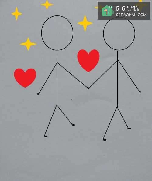 7最后在两个火柴人周围画出一些爱心和一些小星星来做装饰;这样就OK了,是不是很简单也很漂亮呢。