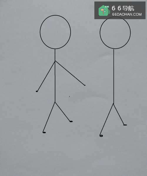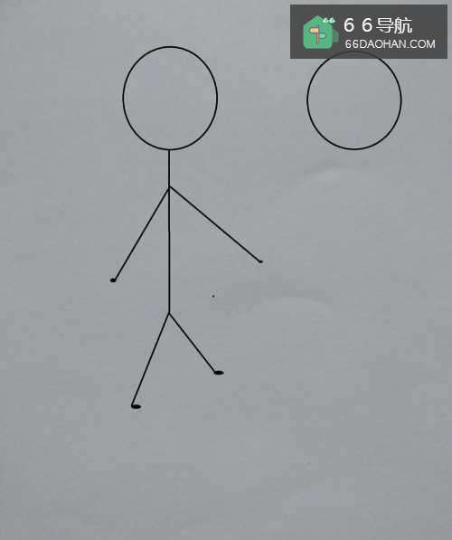 4然后继续画出两只手臂,接下来在这个火柴人傍边继续画出一个小人,同样先画出火柴人的头部。