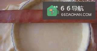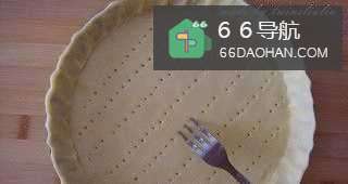 14用叉子在派皮底部扎上小眼,防止底部鼓包