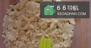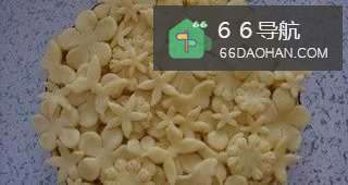 16另一份面团同样擀成薄片,用饼干模压出各种图案。