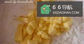 3用手将混合物搓成杏仁粉一般的粗粒状态
