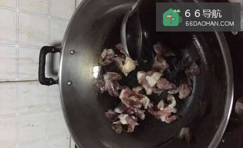 腊肉切薄片,下锅控出油