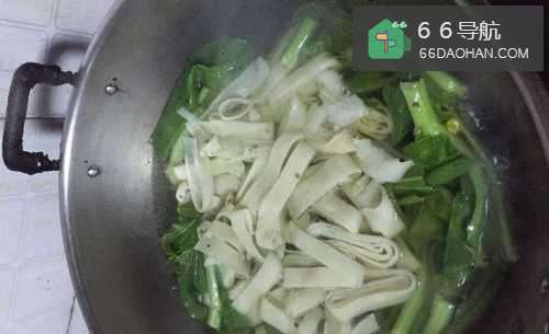 4开水锅中先放入菜薹,再倒入豆丝,盖上锅盖