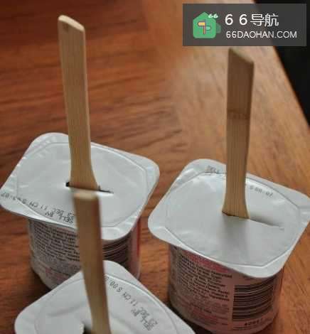 4把雪糕棍插到酸奶盒里,然后冷冻一下.............