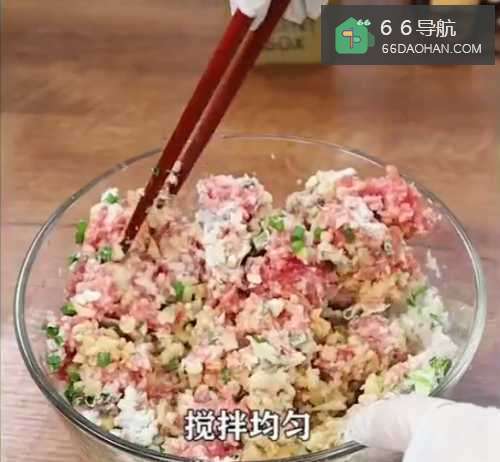 猪肉和莲藕绞碎放入碗中,加适量食盐和胡椒粉。