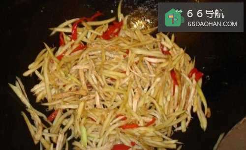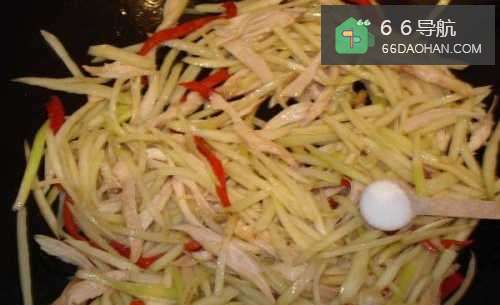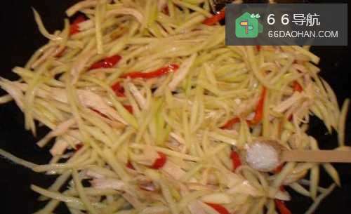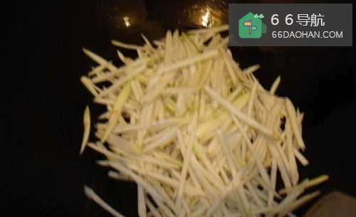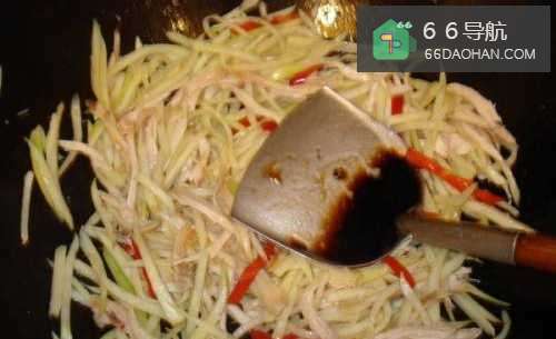 5放入茭白丝翻炒