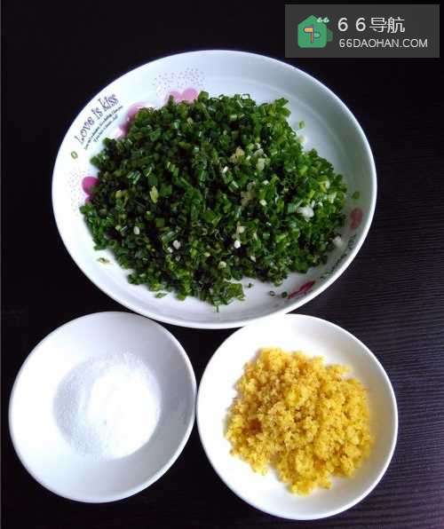 2老姜洗净剁碎,小葱洗净切成葱花,备好食盐。