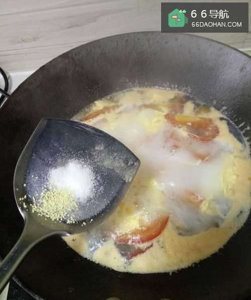 3水烧开之后倒入西红柿,煮3~5分钟。