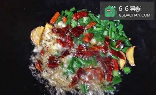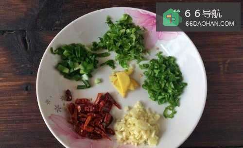 5锅热油先爆香姜片,再倒入蒜碎、红辣椒、青葱碎一起爆炒出香味来