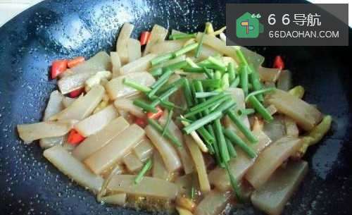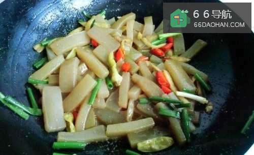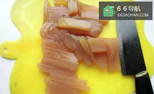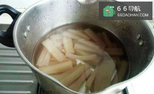 4汤锅里加水,加入魔芋、盐用水煮10分钟捞起,过凉水。