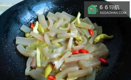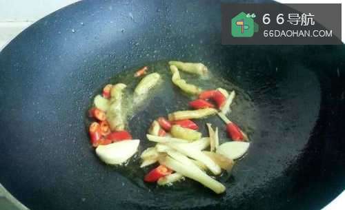 5热锅凉油油热7层下泡椒、泡姜、辣椒大蒜翻炒出香辣味。
