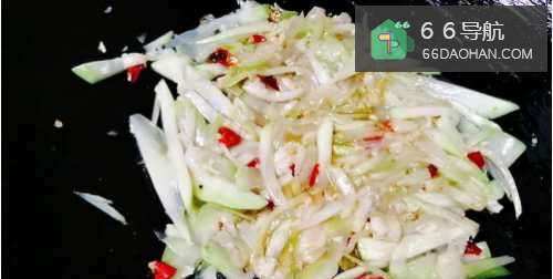 5再把葫芦瓜丝放入锅内转大火爆炒。