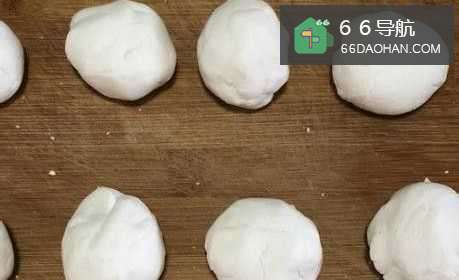3紧接着将揉好的面团,分成一个个大小适中并且均匀的小面剂子,拿起一个小面剂子,将其在手心揉搓整理成圆球状,按照这个方法,将所有的小圆球都做好;