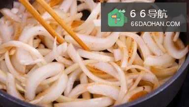 5用同一平底锅,加油炒洋葱至呈金黄色