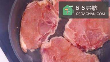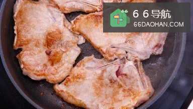 3中火烧热平底锅,落油,猪排每边大约煎45分钟