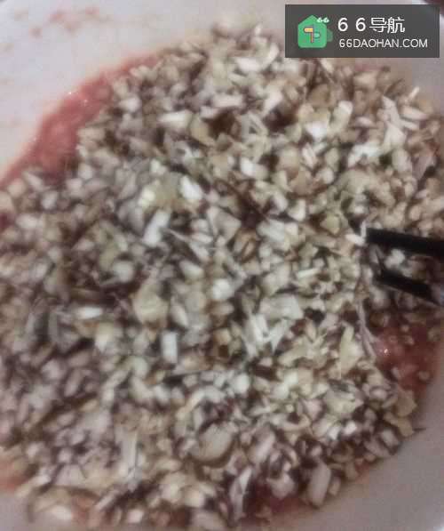 6然后再加入剁好的香菇搅拌均匀后腌制半小时。