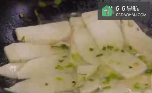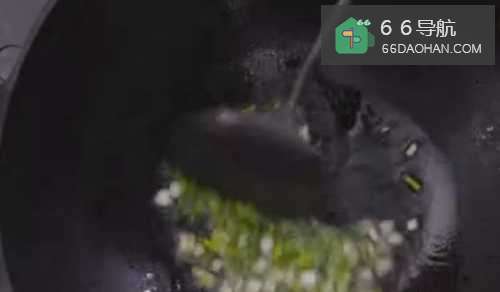 5热锅放油,再放入葱末爆香,然后放冬笋翻炒。