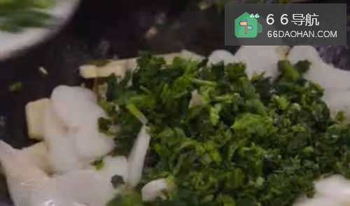8待汤汁烧干,加入荠菜,稍稍翻炒。