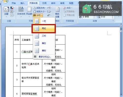 3、 点击【页面布局】菜单→【分栏】→选择分栏格式。