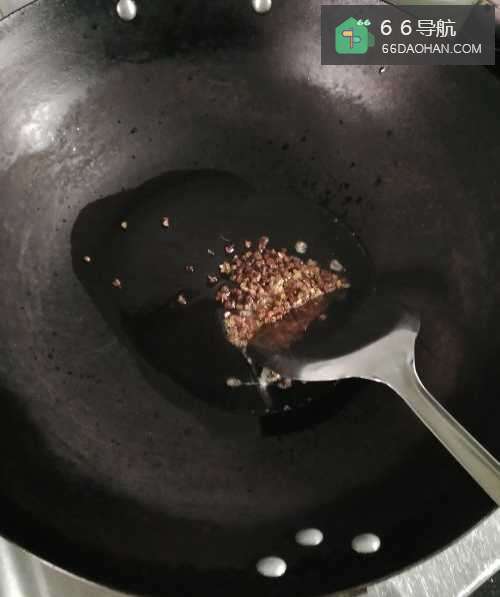 3第三步,等油差不多熟以后倒入花椒炒一会倒出。