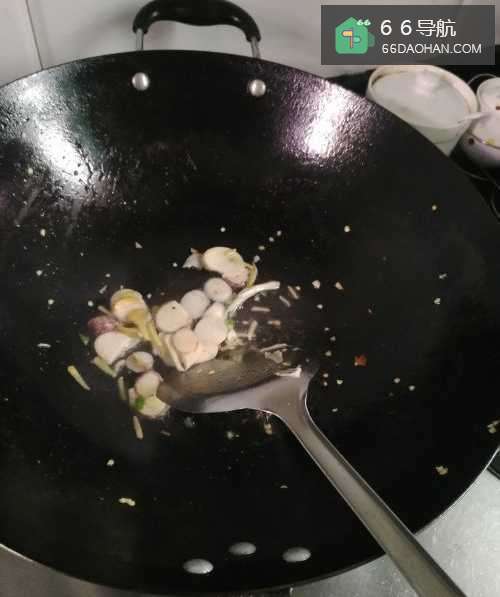 4第四步,然后向锅里倒入生姜和葱。
